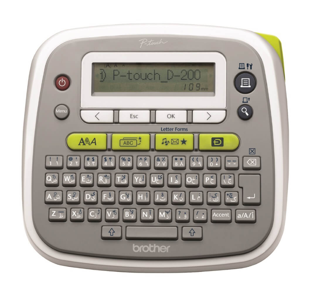 The PT-D200AR Tri-Lingual (English, Arabic & Persian) makes it easy to create stylish labels for your home and office. Label Sizes : Flexibility to choose from 3.5, 6, 9, 12mm Print Speed : Fast 20mm/sec print speed Usage Options : Standalone usage allows label printing without the need to connect to a computer