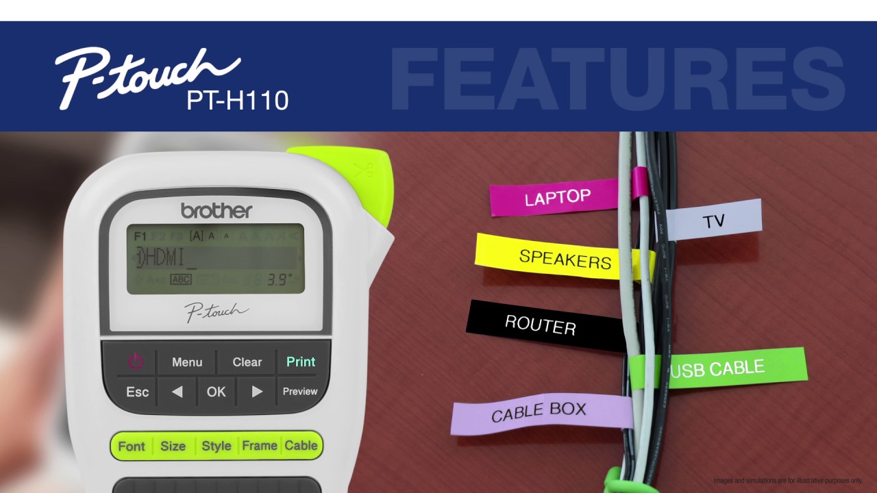Delivers professional, laminated labels at the touch of a button. From files to shelving units, this handheld machine helps keep everything straight at home or in the office, and it comes in Arabic, Farsi and English languages.The portable PTH110 makes it easy to print great-looking labels anywhere. Comes with a variety of fonts, frames and symbols to personalize your labels. Uses durable, laminated easy-peel “TZe” tape up to 1/2″ (12mm) wide. Powered by 6 AAA batteries or optional AC adapter (each sold separately).