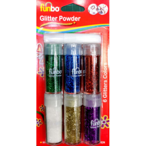 Funbo Glitter Powder Sparkling Blister 9gm x 6Color + Glue, FO-GP-0701